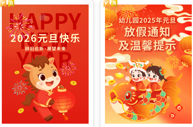 这一套下来,比起单纯的文字块,元旦放假通知立刻生动了许多!