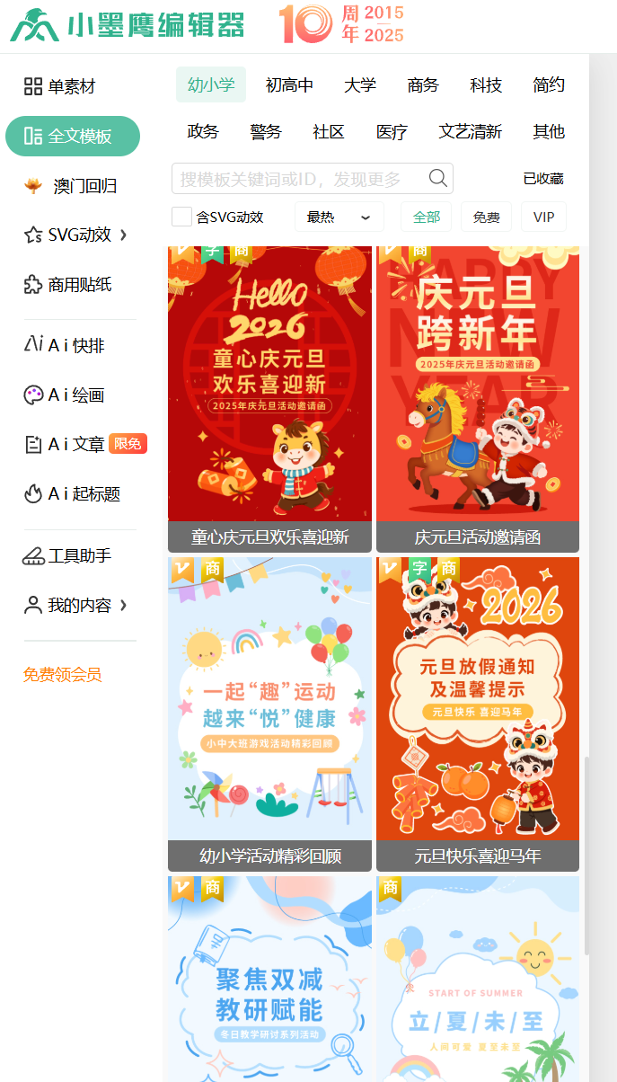 多媒体支持:SVG动画模板3000+,动态效果轻松实现,为文章增添趣味性。
