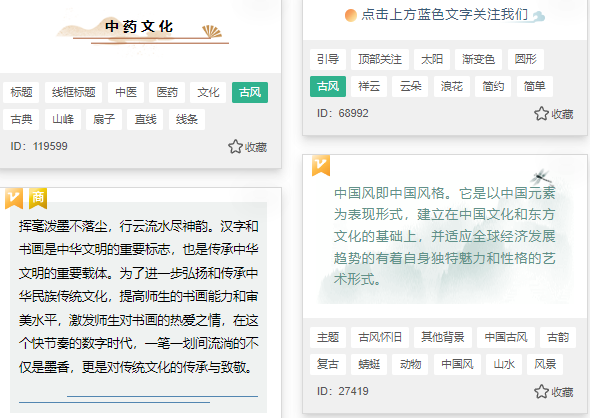产品展示:比如传统工艺品推广、茶文化介绍等,用古风样式可以有效提升品牌文案的档次感。