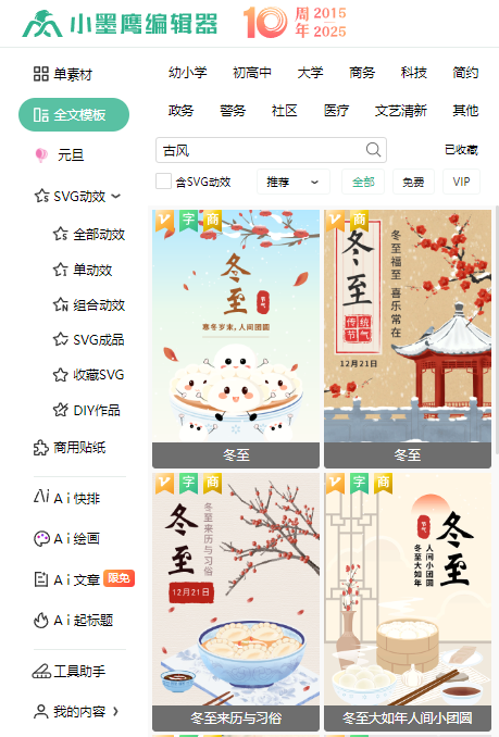 选择小墨鹰编辑器作为今天推荐的工具,主要是因为它的古风模板素材库让我惊艳。很多公众号排版工具都宣称自家素材丰富,但真正能把古风做得有气质、有韵味,又脱离 “千篇一律花里胡哨”的,实在不多。而小墨鹰恰好在这方面有一套。