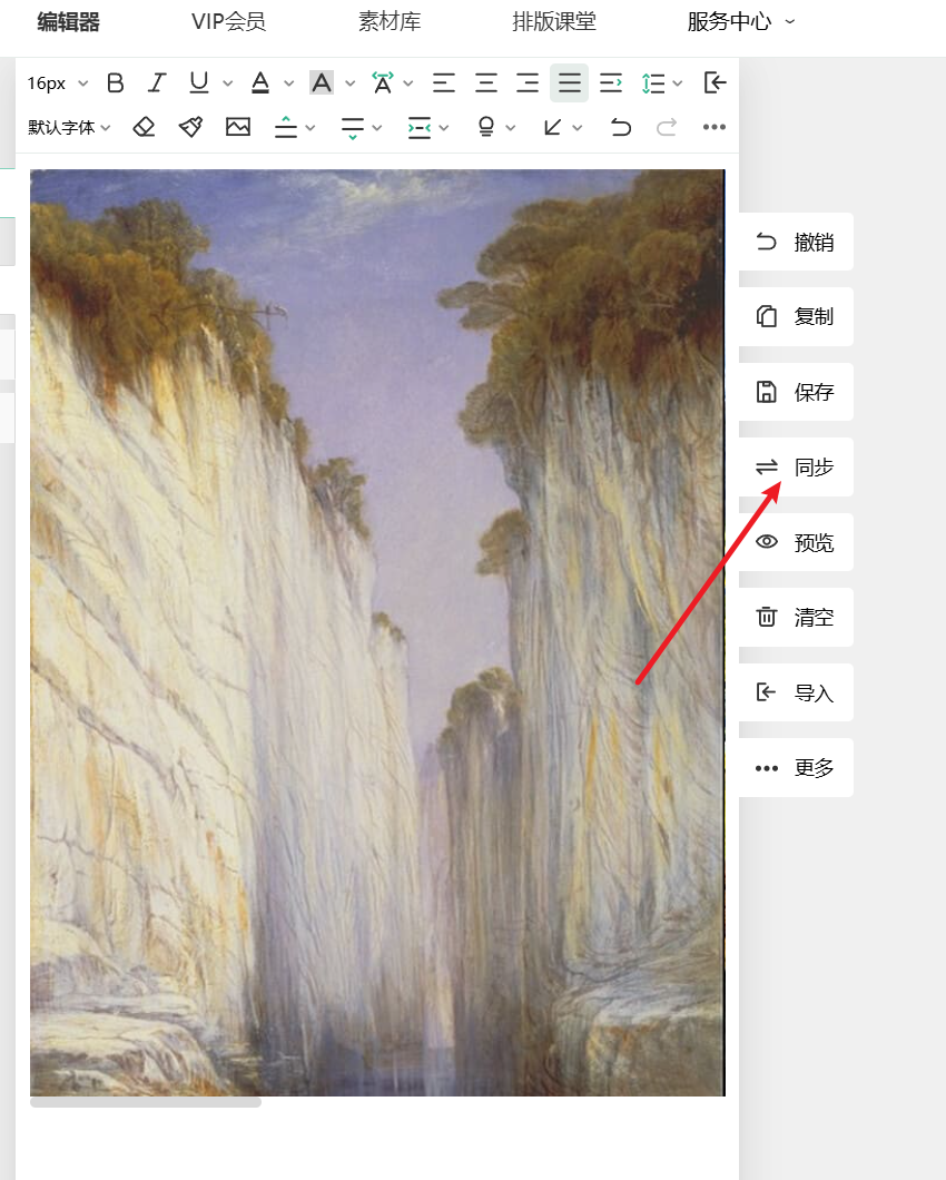完成后点击弹窗底部的按钮,插入编辑区就可以了,还要提醒一下。放到公众号里面的时候要用同步功能,不要用复制,复制有时候容易出错。