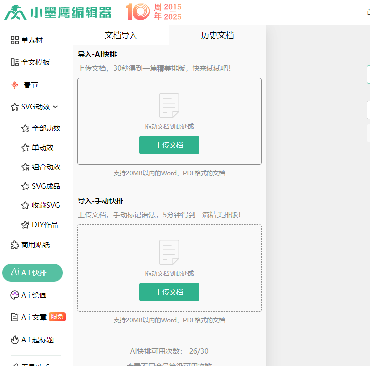 我们自己的排版经常会被过往的习惯给束缚到,这里直接上传文档就可以一键实现快速排版,极大节省了我们创作以外的精力。