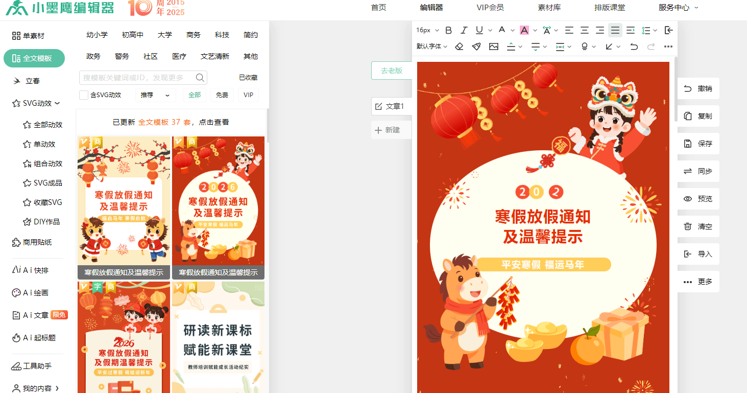 写文章往往需要追热点,这里的模板能更快给到灵感,减少整体排版的时间,并且让主题和排版风格趋于一致,阅读体验也会更好。