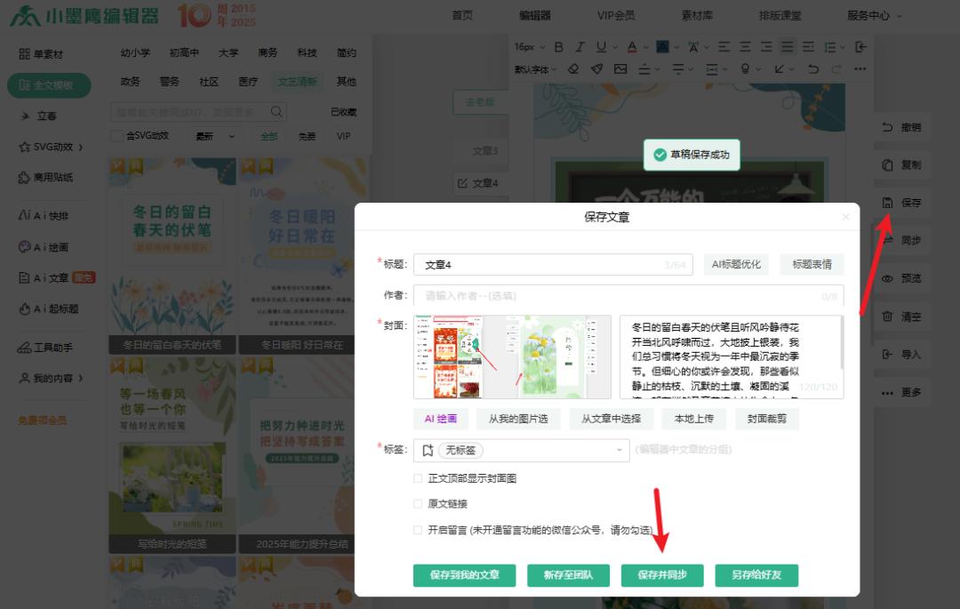 第五步:确认无误后,点击“保存-保存并同步”到公众号后台。