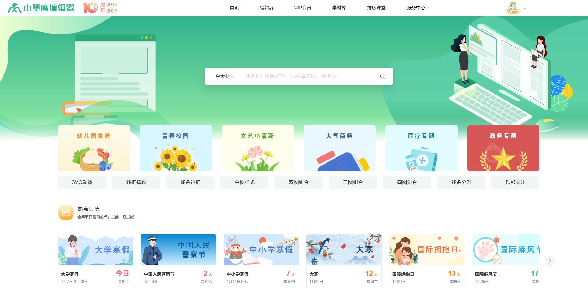 在左侧素材区搜索“标题”、“分割线”、“引导”等关键词,选用免费的样式点缀。
